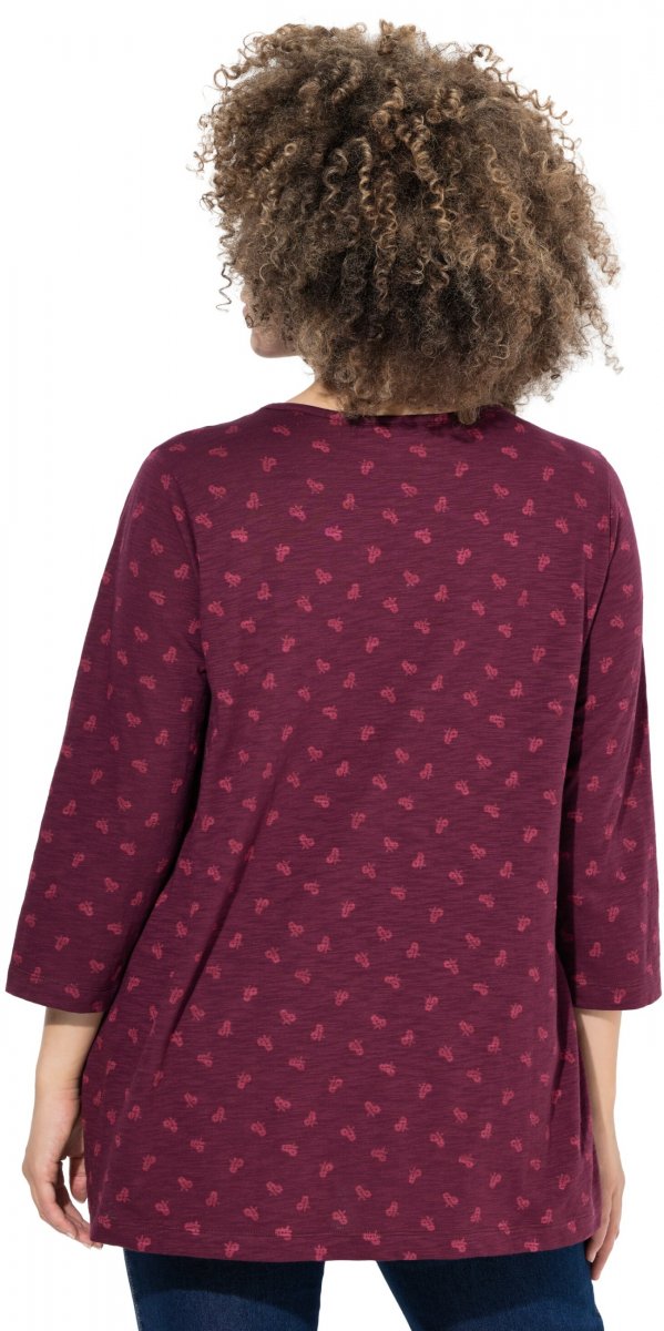 Ulla Popken Flower Print 3/4 Sleeve Tee Dark Ruby