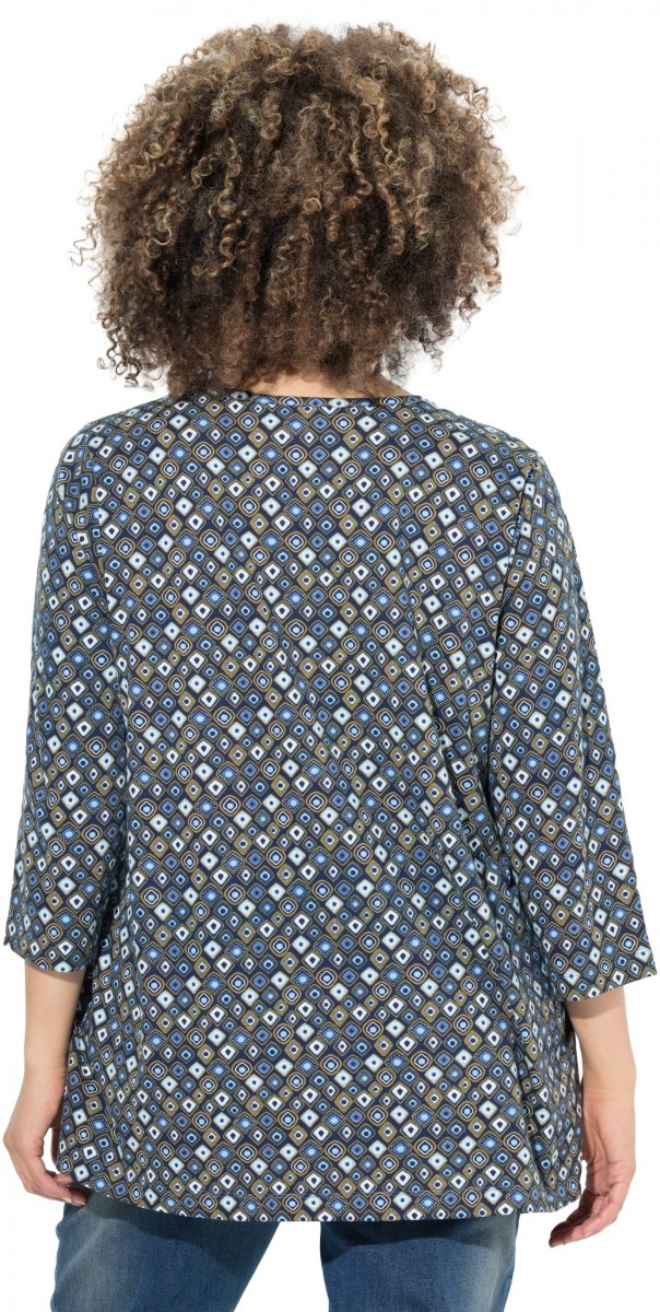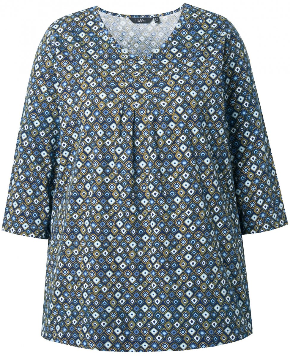 Ulla Popken Graphic Print Pleated 3/4 Sleeve Tee Atlantic Blue