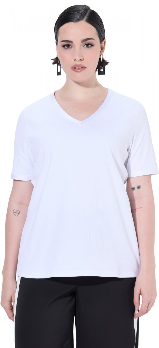 Mérettáblázat - Ulla Popken Satin Trimmed Ribbed Jersey Short Sleeve T-Shirt Snow White