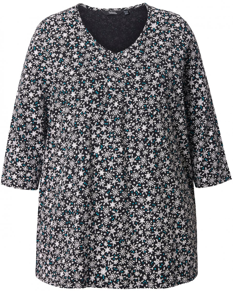 Ulla Popken Snowflake Print 3/4 Sleeve Tee Black