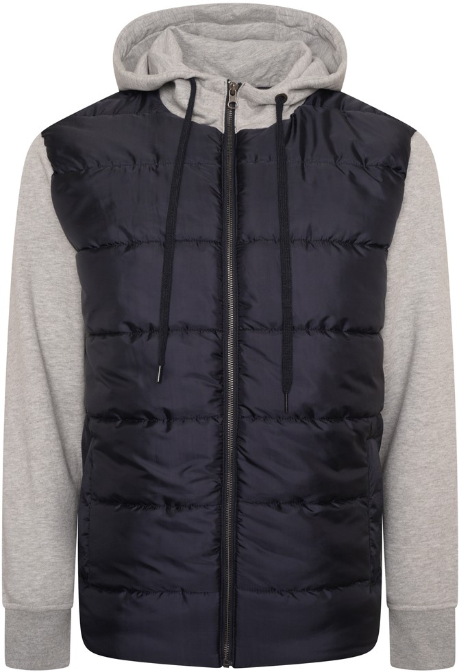 Mérettáblázat - Kam Jeans KV135 Quilted Zip Thru Hoody with Padded Body & Jersey Sleeves Navy TALL SIZES